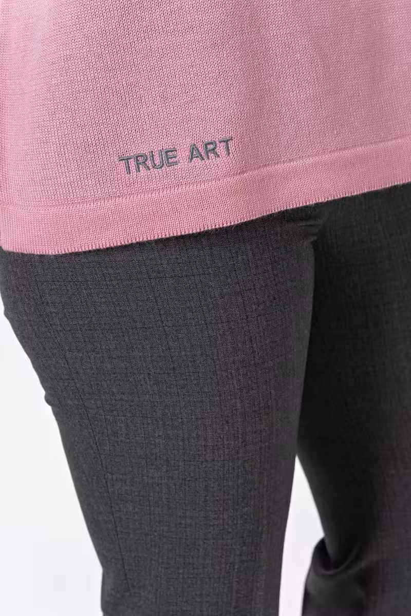 Этот джемпер воплощает философию современного комфорта – когда хочется выглядеть стильно но чувствовать себя как дома. Удлиненный силуэт мягко обрисовывает фигуру не сковывая движений. Пудровый розовый оттенок освежает лицо и поднимает настроение даже в серые дни.Контрастная темная отделка по вороту и краям рукавов создает четкие линии превращая расслабленную модель в продуманный элемент гардероба. Спущенная линия плеча добавляет непринужденности – такой джемпер одинаково хорошо смотрится с прямыми классическими брюками для прогулки по городу и с зауженными для встреч с друзьями.Гладкая вязка из качественного трикотажа приятна к телу и не теряет форму после стирки. Универсальная длина позволяет носить джемпер навыпуск или заправлять в брюки высокой посадки экспериментируя с пропорциями. Модель легко становится основой для офисного образа в паре с деловыми брюками или создает расслабленный casual-лук с свободными брюками-бананами. Это та вещь которая делает будни чуть более красивыми.