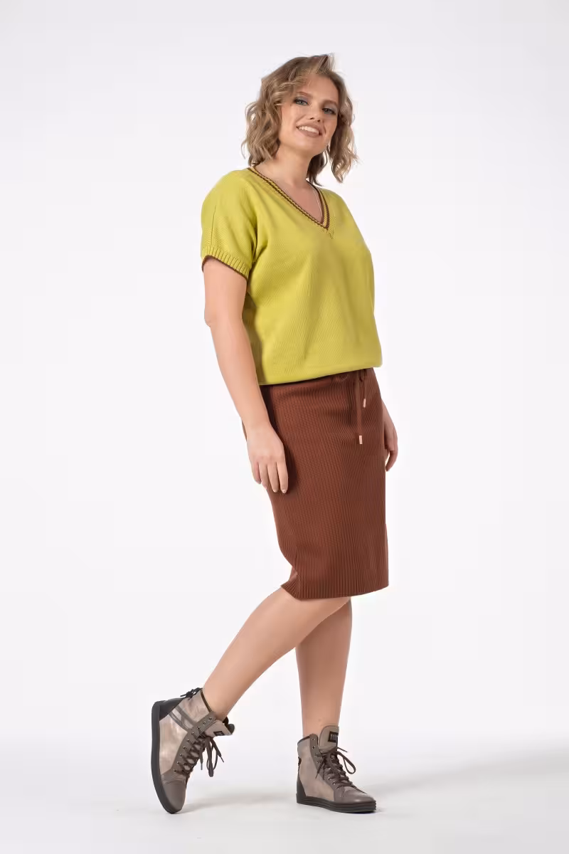 Этот джемпер в яркой зеленой гамме воплощает философию современной элегантности. Прямой силуэт создает безупречную основу для любого образа не сковывая движения и подчеркивая естественные линии фигуры. V-образный вырез визуально удлиняет шею и добавляет нотку женственности даже самому строгому луку.Короткие рукава делают модель универсальной для теплого сезона – от весенних деловых встреч до летних прогулок. Гладкая вязаная структура ткани придает джемперу благородный внешний вид и приятные тактильные ощущения.В офисном образе этот джемпер прекрасно сочетается с прямыми брюками высокой посадки и классическим жакетом. Для прогулок его можно носить с зауженными джинсами или свободными брюками-бананами. Вечерний выход предполагает комбинацию с элегантными зауженными брюками и изящными аксессуарами.Насыщенный зеленый оттенок освежает цвет лица и создает позитивное настроение. Качественный трикотаж обеспечивает комфорт в течение всего дня сохраняя форму и привлекательный внешний вид даже после активного дн