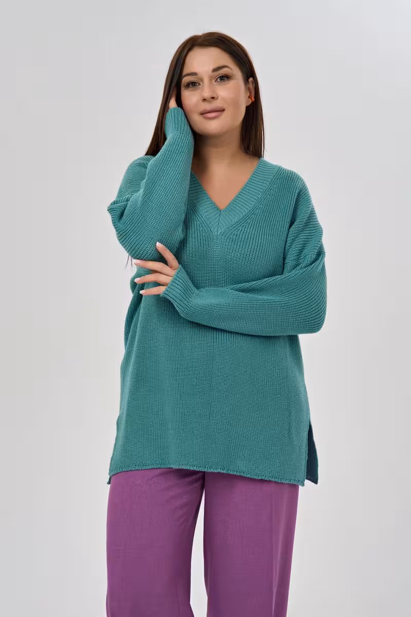 Джемпер вязаный с V-вырезом прямого силуэта