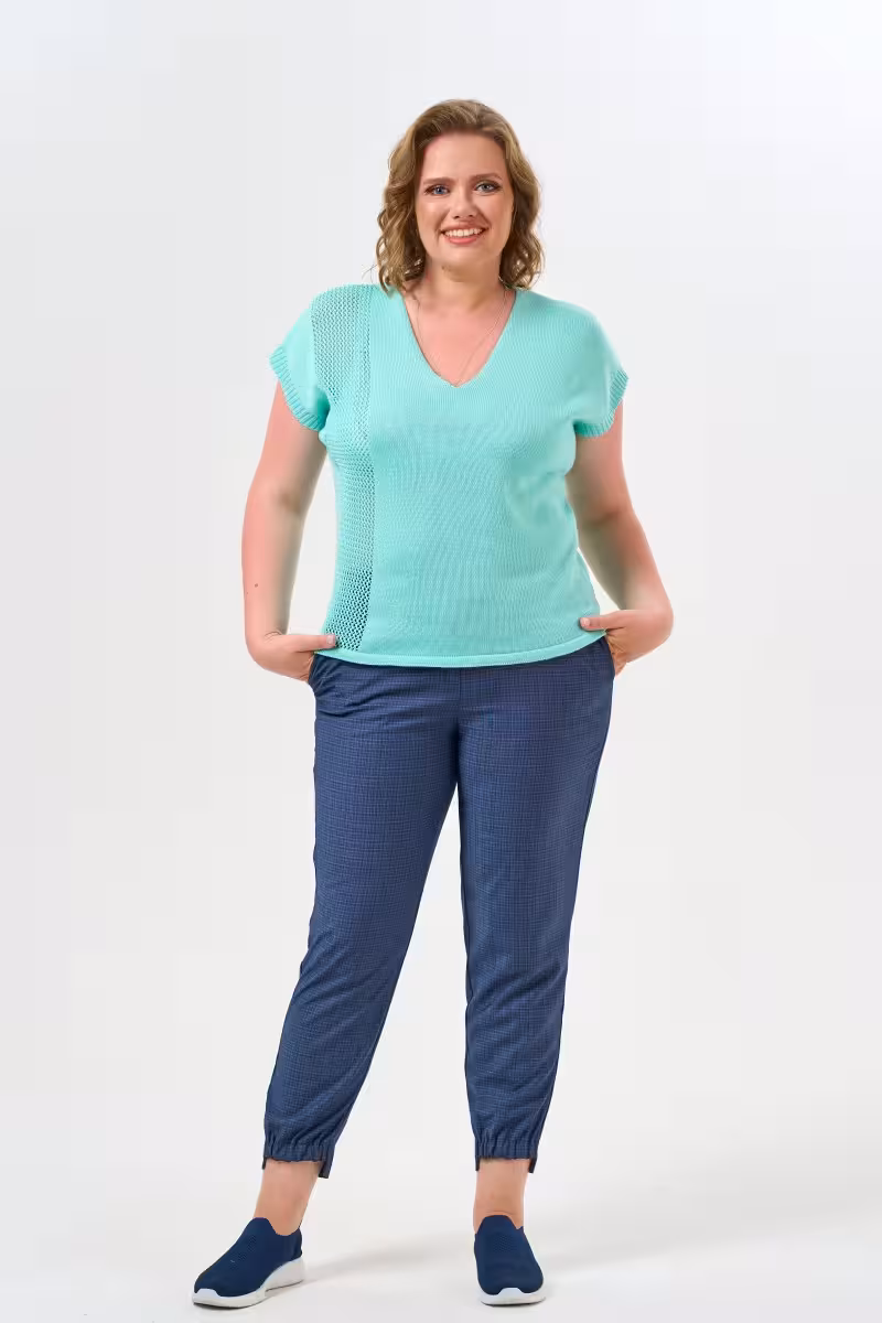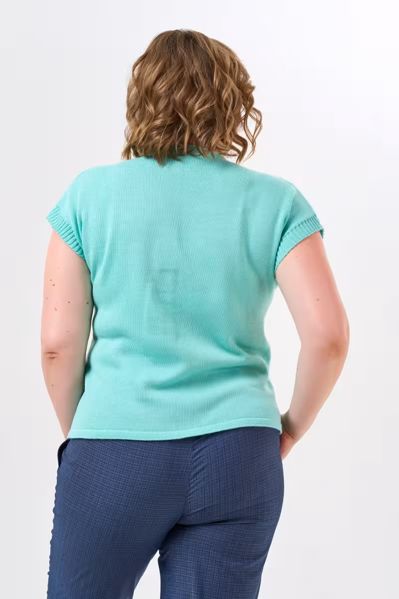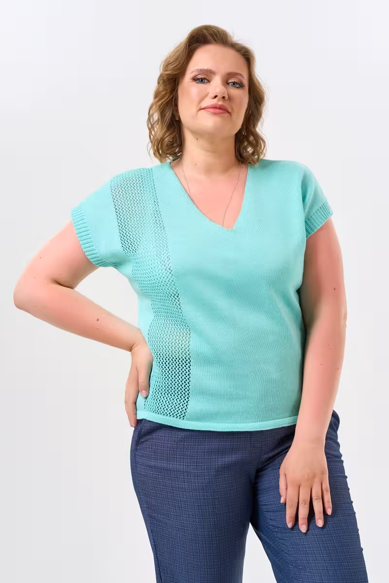 Мятный джемпер с V-образным вырезом станет основой множества образов в гардеробе современной женщины. Прямой силуэт не сковывает движения и подходит любому типу фигуры. Глубина выреза продумана так чтобы создать элегантную линию декольте без излишней открытости.Нежный мятный оттенок освежает лицо и прекрасно сочетается с базовыми цветами гардероба. Гладкая вязка из качественного трикотажа приятна к телу и долго сохраняет первоначальный вид. Для офиса комбинируйте джемпер с деловыми прямыми брюками и жакетом. На прогулку наденьте свободные брюки-бананы с поясом на резинке. Для вечернего выхода подойдут зауженные брюки которые создадут более изысканный силуэт.Этот джемпер одинаково уместен на деловой встрече и во время путешествия. Универсальность кроя и благородный цвет делают его незаменимым спутником активной городской жизни. Мягкий трикотаж обеспечивает комфорт на протяжении всего дня а лаконичный дизайн позволяет экспериментировать с аксессуарами и дополнениями к образу.