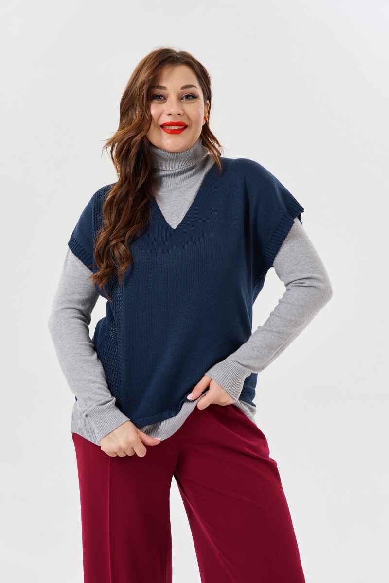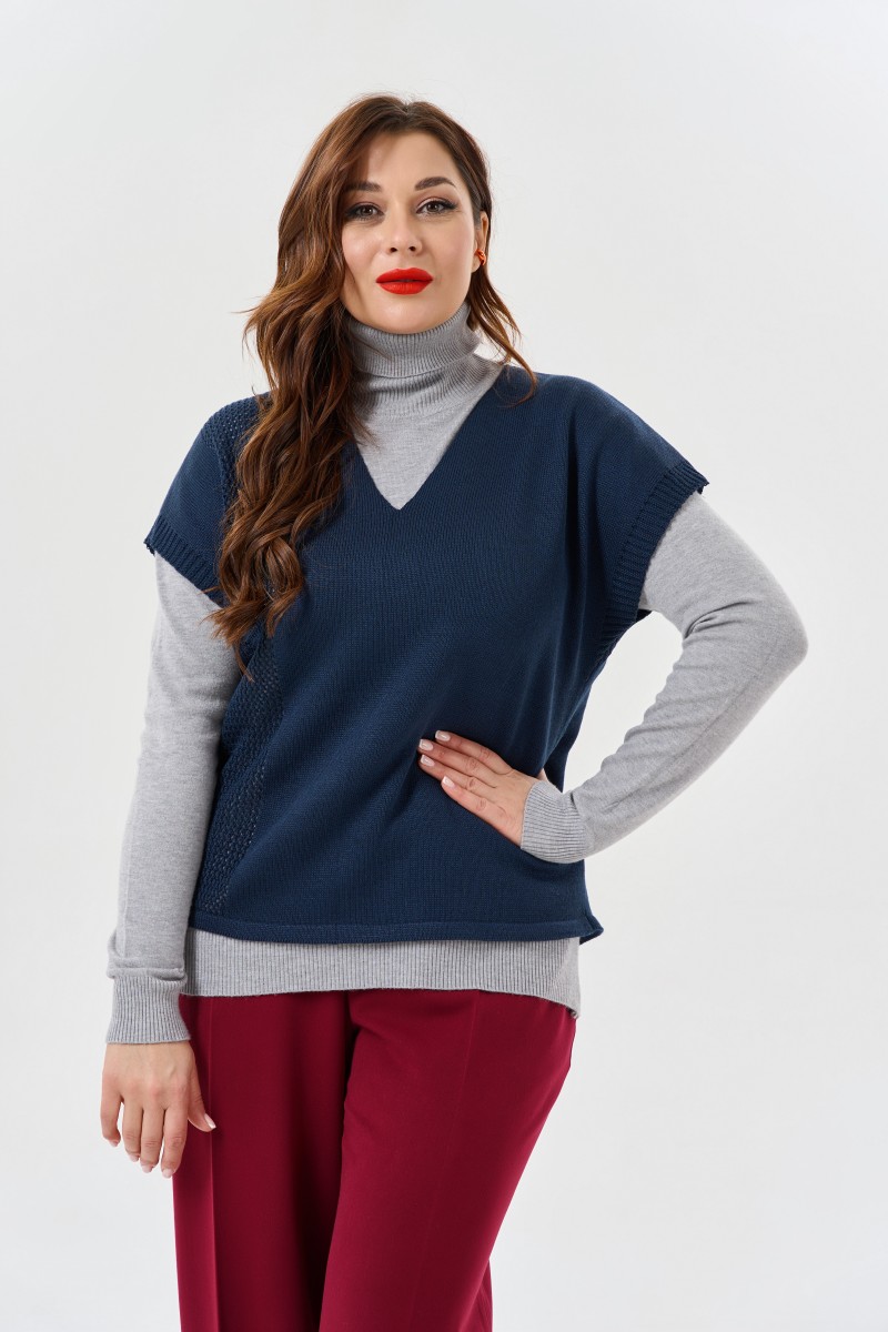 Джемпер женский вязанный (переплетение: кулирная гладь); прямого силуэта с V вырезом горловины.