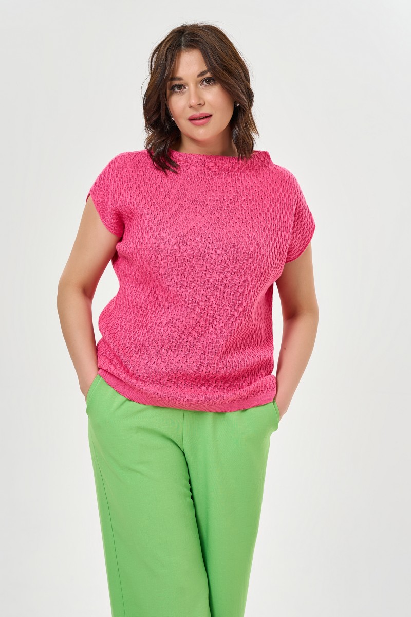 Джемпер женский вязанный паутинкой прямого силуэта воротник полустойка.