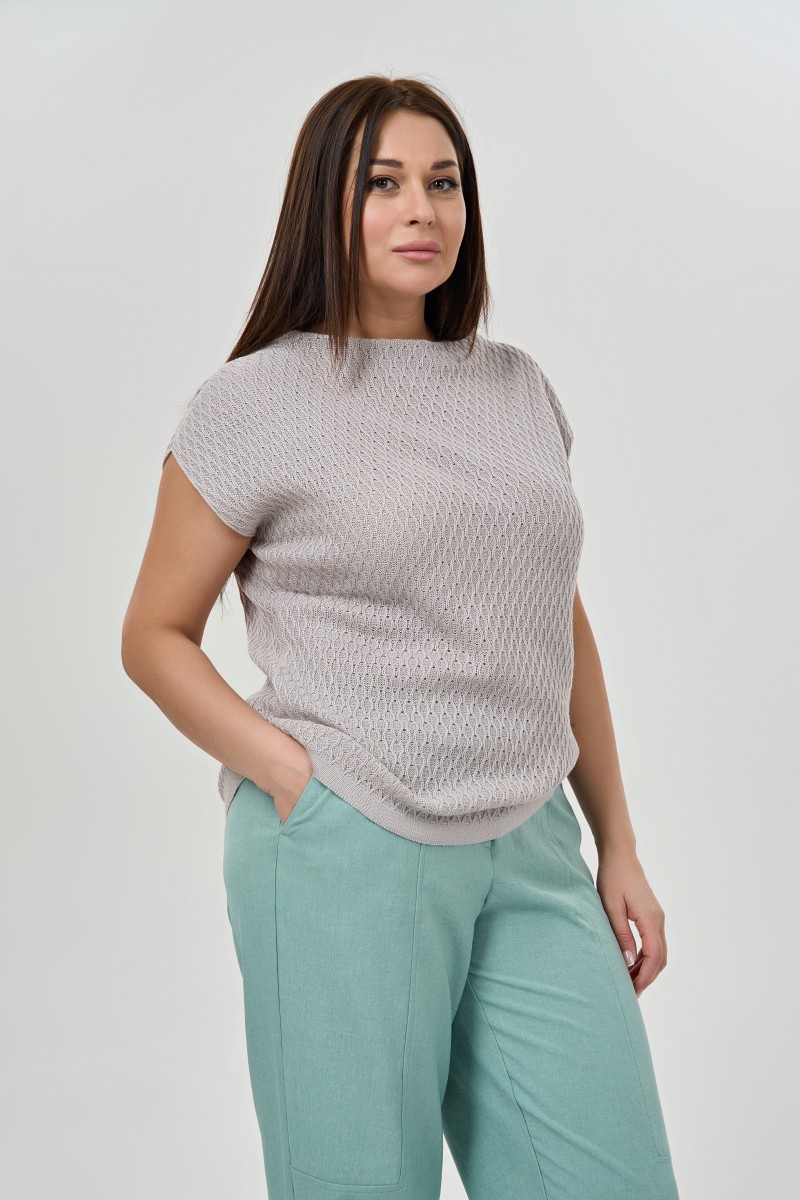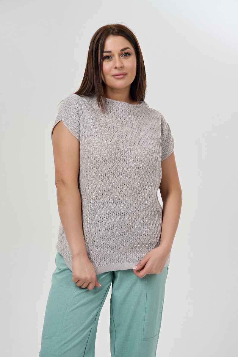 Легкий летний джемпер с рисунком в сером цвете.