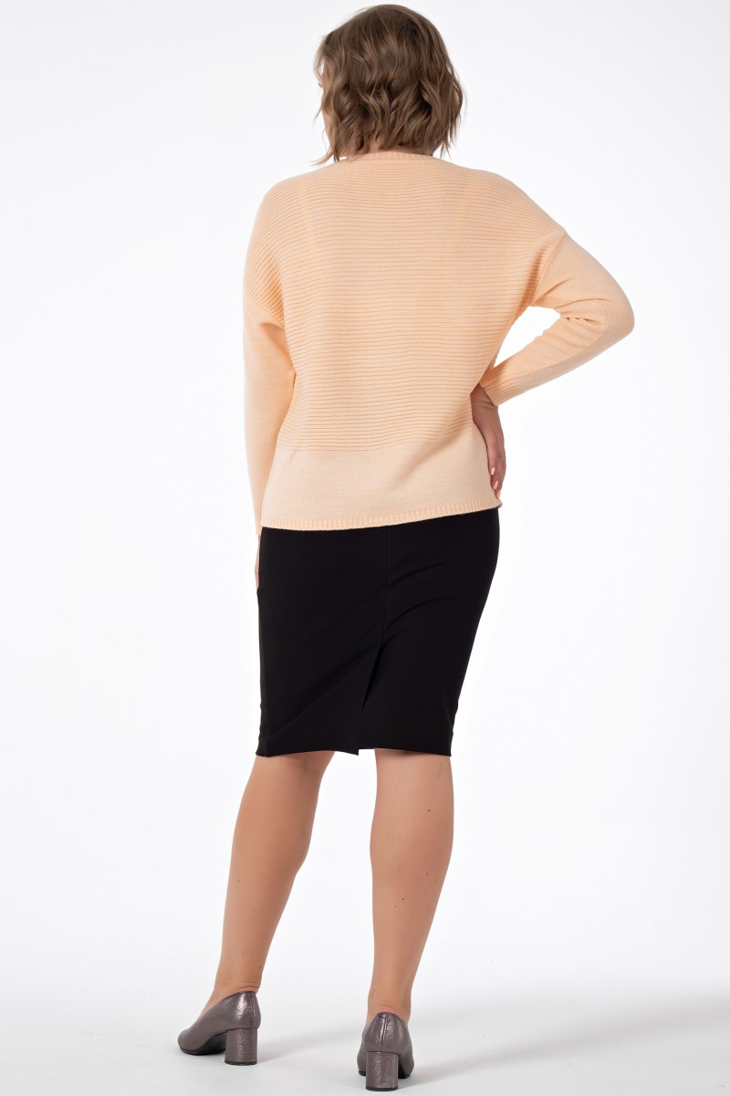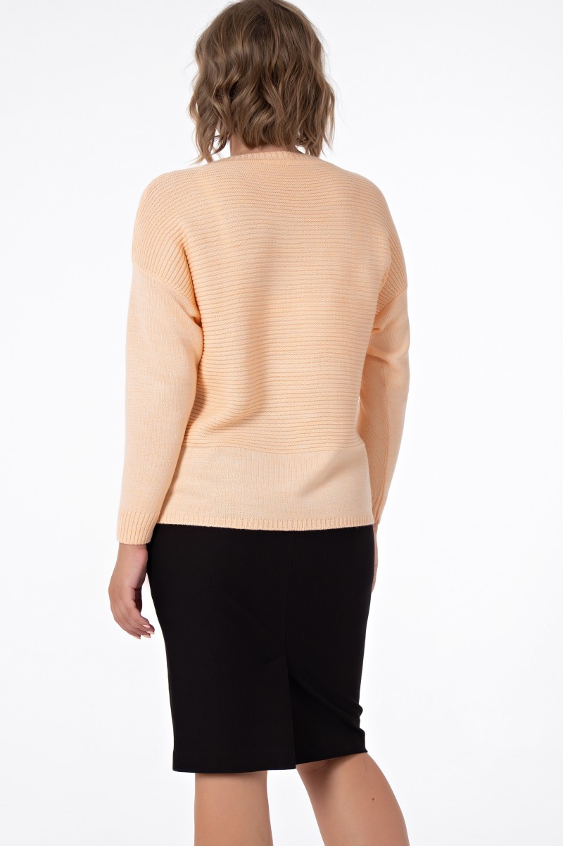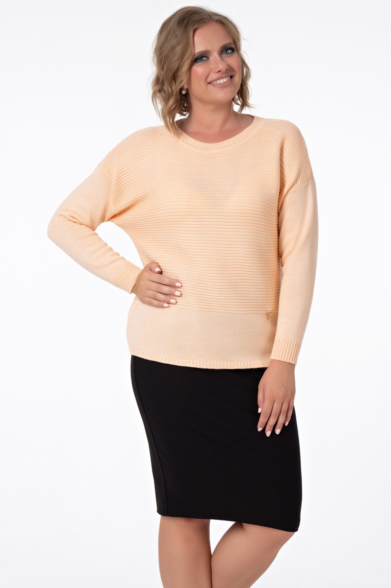 Джемпер женский вязанный (переплетение кулирная гладь)/ прямого силуэта/ рукава длинные цельнокроеные с членением выше локтя/ низ ровный с декоративной пряжкой круглый вырез горловины обработанный бейкой.
