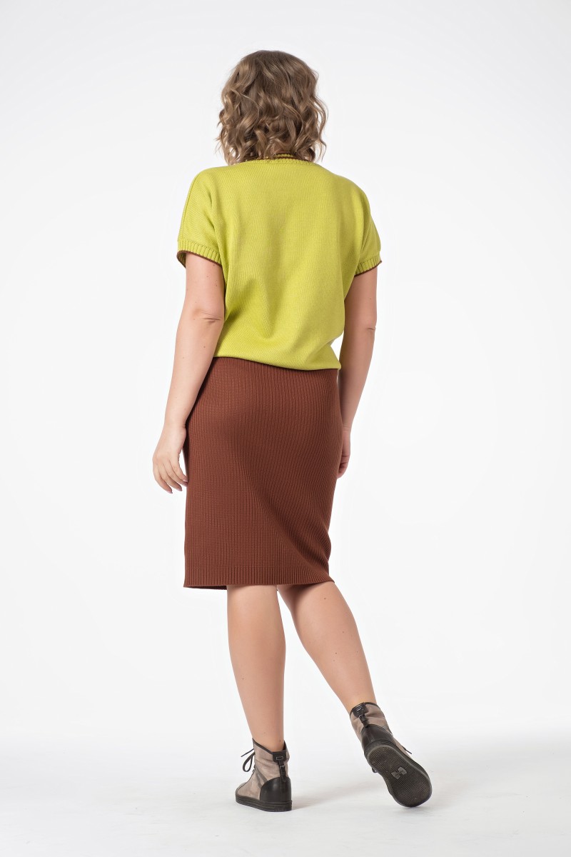 Джемпер женский вязанный (переплетение: кулирная гладь)/ прямого силуэта с V вырезом горловины обработанным бейкой. Рукава короткие цельнокроеные.
