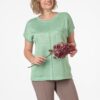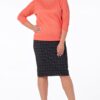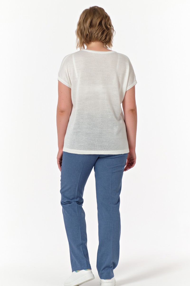 Джемпер женский вязанный (переплетение: кулирная гладь) прямого силуэта с короткими цельнокроеными рукавами. Перед с декоративным средним швом на левой половинке переда вывязанный карман. Горловина круглая обработана бейкой.