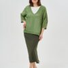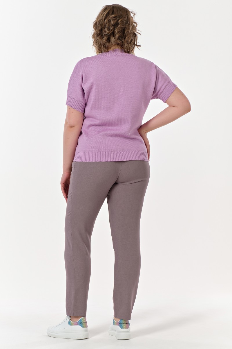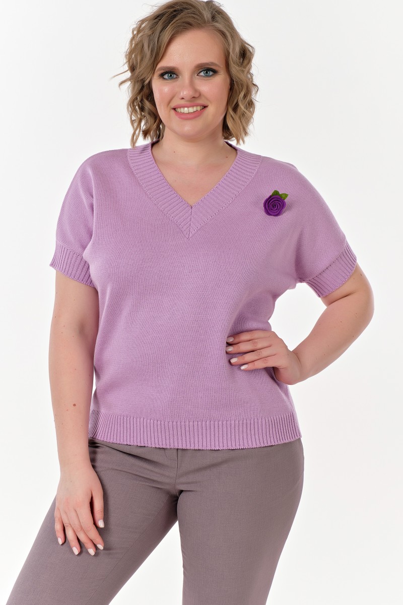 Джемпер женский вязаный в кулирной глади прямого силуэта с V-вырезом горловины. Рукава короткие цельнокроеные.