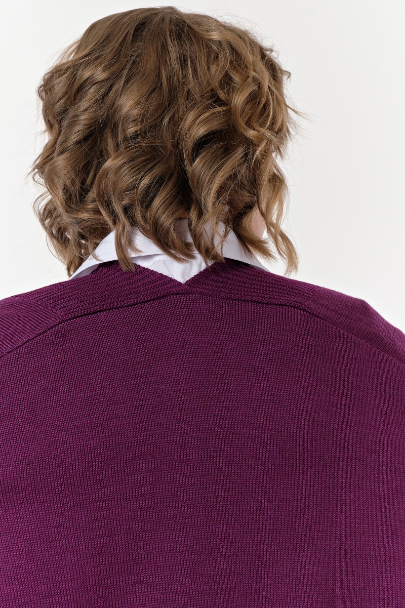 Жакет женский вязанный (переплетение: кулирная гладь + ажур)/ прямого силуэта длина до линии бедер без застежки. Рукава длинные цельнокроеные с членением выше локтя.