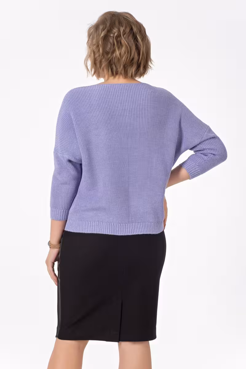 Этот вязаный джемпер станет основой гардероба для создания множества образов. Прямой силуэт деликатно подчеркивает фигуру не сковывая движений. Особая фактура вязки добавляет джемперу объем и интересную текстуру. Элегантный вырез-лодочка визуально расширяет плечи и красиво обрамляет шею. Рукава три четверти с деликатным членением выше локтя создают стильную игру пропорций. Для офиса джемпер прекрасно сочетается с прямыми деловыми брюками и классической юбкой. Casual-образ получится с джинсами-скинни или свободными брюками-бананами. На вечеринку его можно дополнить зауженными брюками и яркими аксессуарами. Качественный трикотаж приятен к телу и сохраняет форму после стирки. Такая вещь легко адаптируется под любой дресс-код — от деловой встречи до прогулки по городу. Джемпер одинаково хорош как самостоятельный элемент образа так и в качестве базы для многослойных луков.