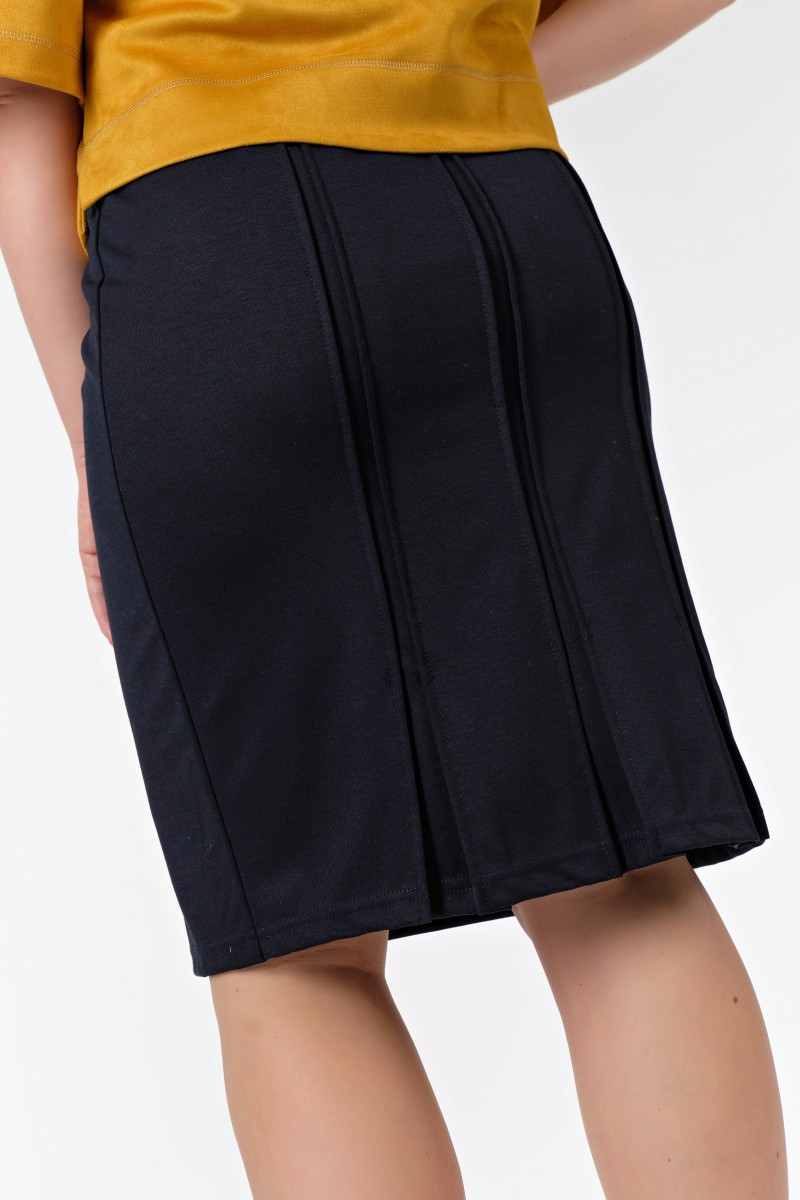 Элегантная юбка с зауженным силуэтом создает изящную линию от бедер к коленям. Трикотажное полотно мягко облегает фигуру а декоративные складки сзади добавляют модели особую изысканность.