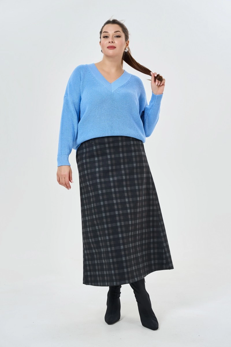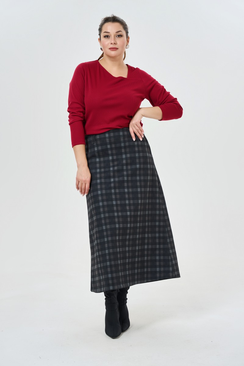 Плотный трикотаж обнимает фигуру высокая посадка подчеркивает талию. Клетчатый принт добавляет характера любому образу.