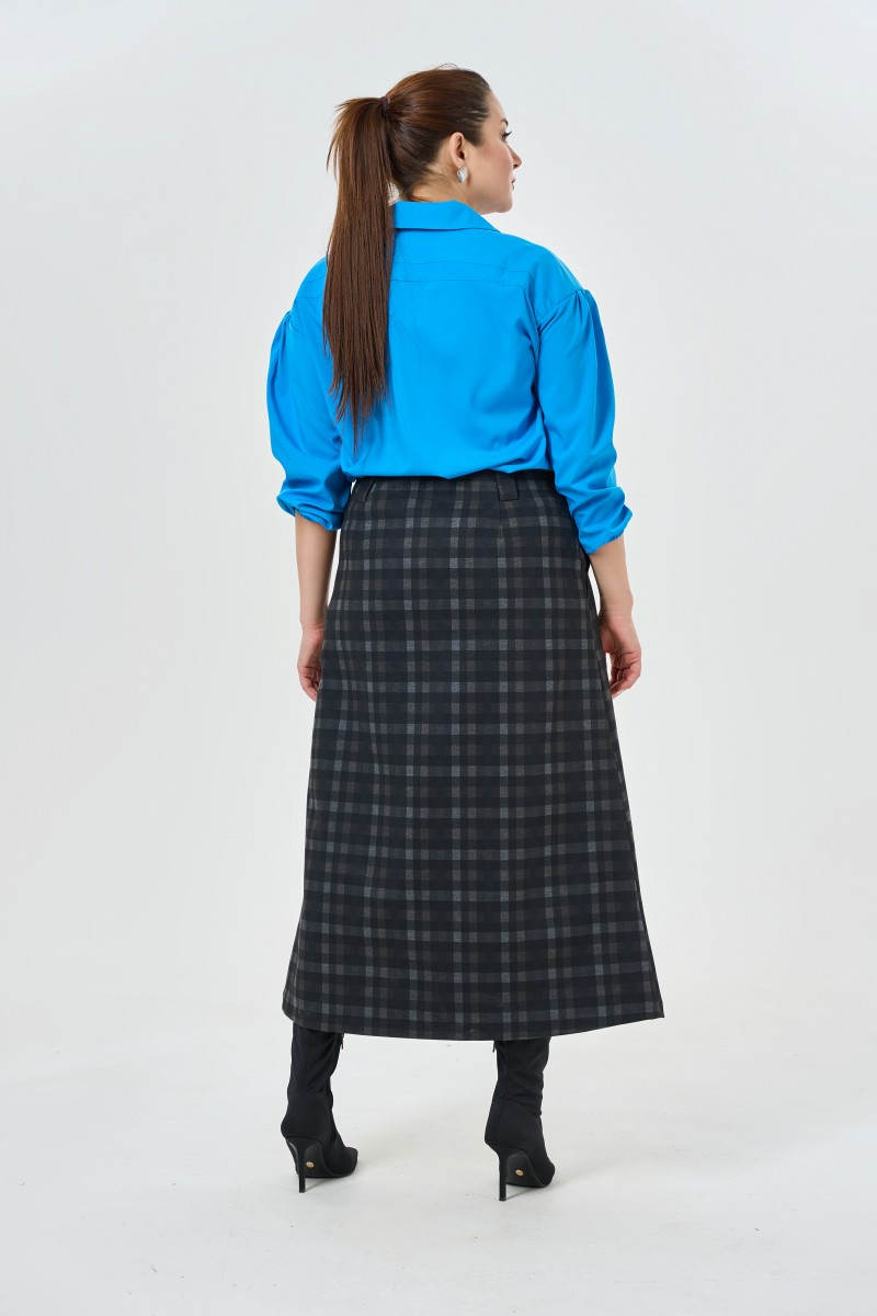 Эта юбка миди из плотного трикотажа станет основой для множества стильных образов. Высокая посадка визуально удлиняет ноги и подчеркивает талию создавая красивый силуэт. Расширенный к низу крой добавляет женственности а клетчатый принт в серо-черных тонах делает модель универсальной для разных случаев.Широкий пояс с пряжкой акцентирует линию талии и позволяет регулировать посадку. Боковые карманы добавляют практичности – в них поместятся необходимые мелочи. Удобная застежка сбоку обеспечивает комфортную посадку.Плотный трикотаж держит форму и не сковывает движения. Подкладка делает модель более комфортной в носке. Для офиса сочетайте юбку с блузкой и жакетом создавая деловой образ. На прогулку подойдет комбинация с футболкой или свитшотом. Вечером дополните лук топом или блузкой из шелка.Универсальная длина миди подходит для деловых встреч путешествий и повседневной жизни. Сдержанная клетка легко комбинируется с однотонными вещами разных цветов.