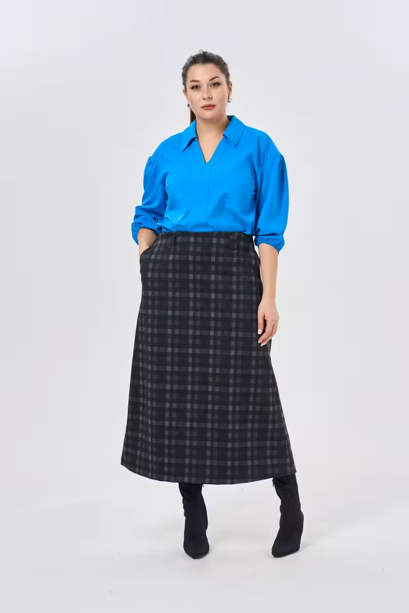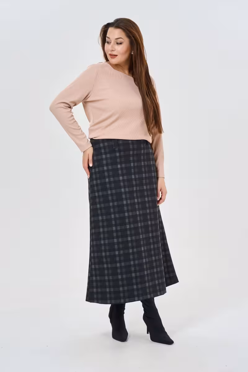 Эта юбка миди из плотного трикотажа станет основой для множества стильных образов. Высокая посадка визуально удлиняет ноги и подчеркивает талию создавая красивый силуэт. Расширенный к низу крой добавляет женственности а клетчатый принт в серо-черных тонах делает модель универсальной для разных случаев.Широкий пояс с пряжкой акцентирует линию талии и позволяет регулировать посадку. Боковые карманы добавляют практичности – в них поместятся необходимые мелочи. Удобная застежка сбоку обеспечивает комфортную посадку.Плотный трикотаж держит форму и не сковывает движения. Подкладка делает модель более комфортной в носке. Для офиса сочетайте юбку с блузкой и жакетом создавая деловой образ. На прогулку подойдет комбинация с футболкой или свитшотом. Вечером дополните лук топом или блузкой из шелка.Универсальная длина миди подходит для деловых встреч путешествий и повседневной жизни. Сдержанная клетка легко комбинируется с однотонными вещами разных цветов.