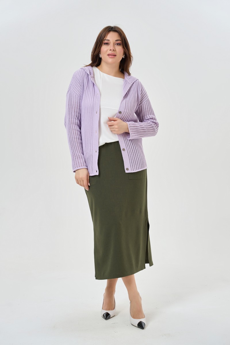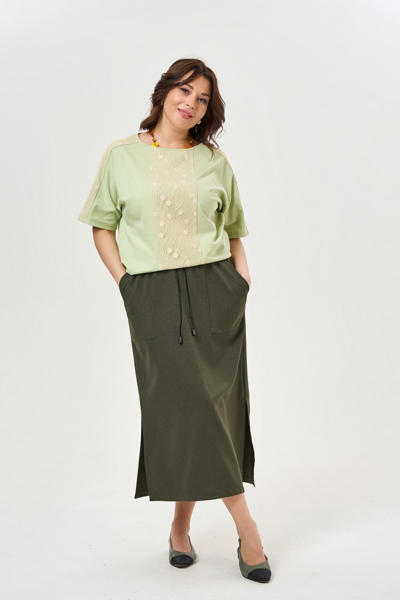 Юбка женская прямого силуэта длина макси. По переду накладной фигурный карман. Пояс притачной на резинке с завязывающимся шнуром.Низ ровный по боковым швам разрезы.