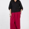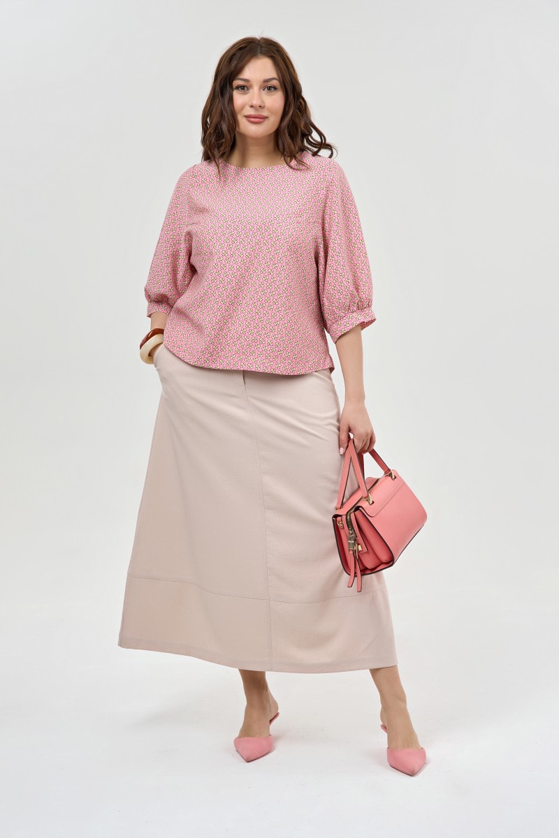 Юбка «миди» без подкладки А-образного силуэта на фигурном поясе. Перед со средним швом и карманами в среднем шве переда застежка «гульфик» на «молнию» и 2 пуговицы на поясе. Стиль повседневный.