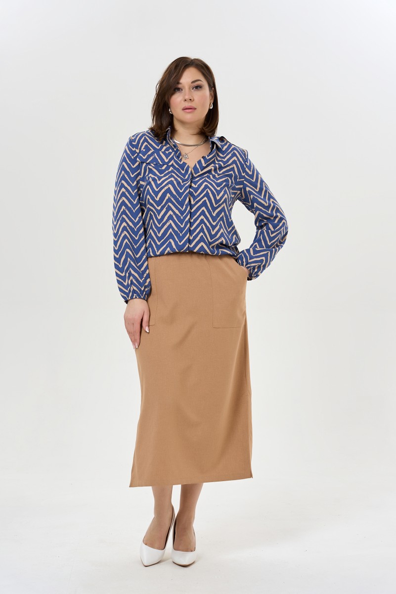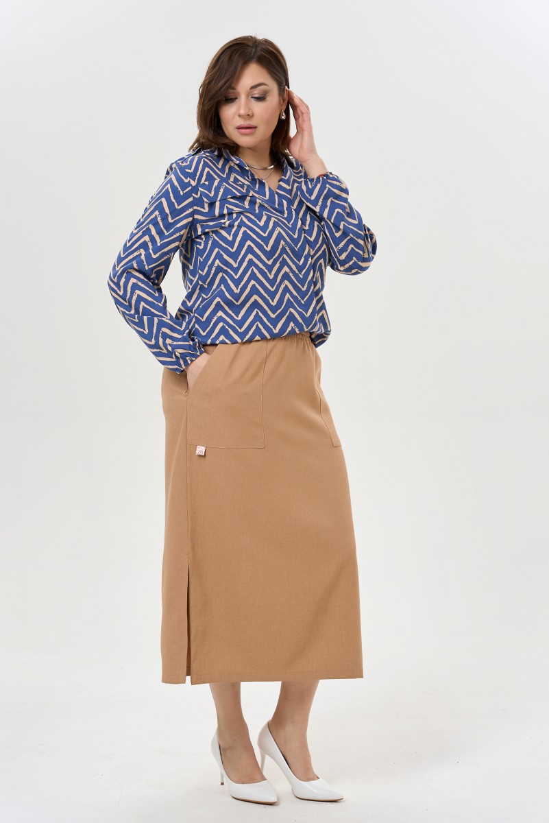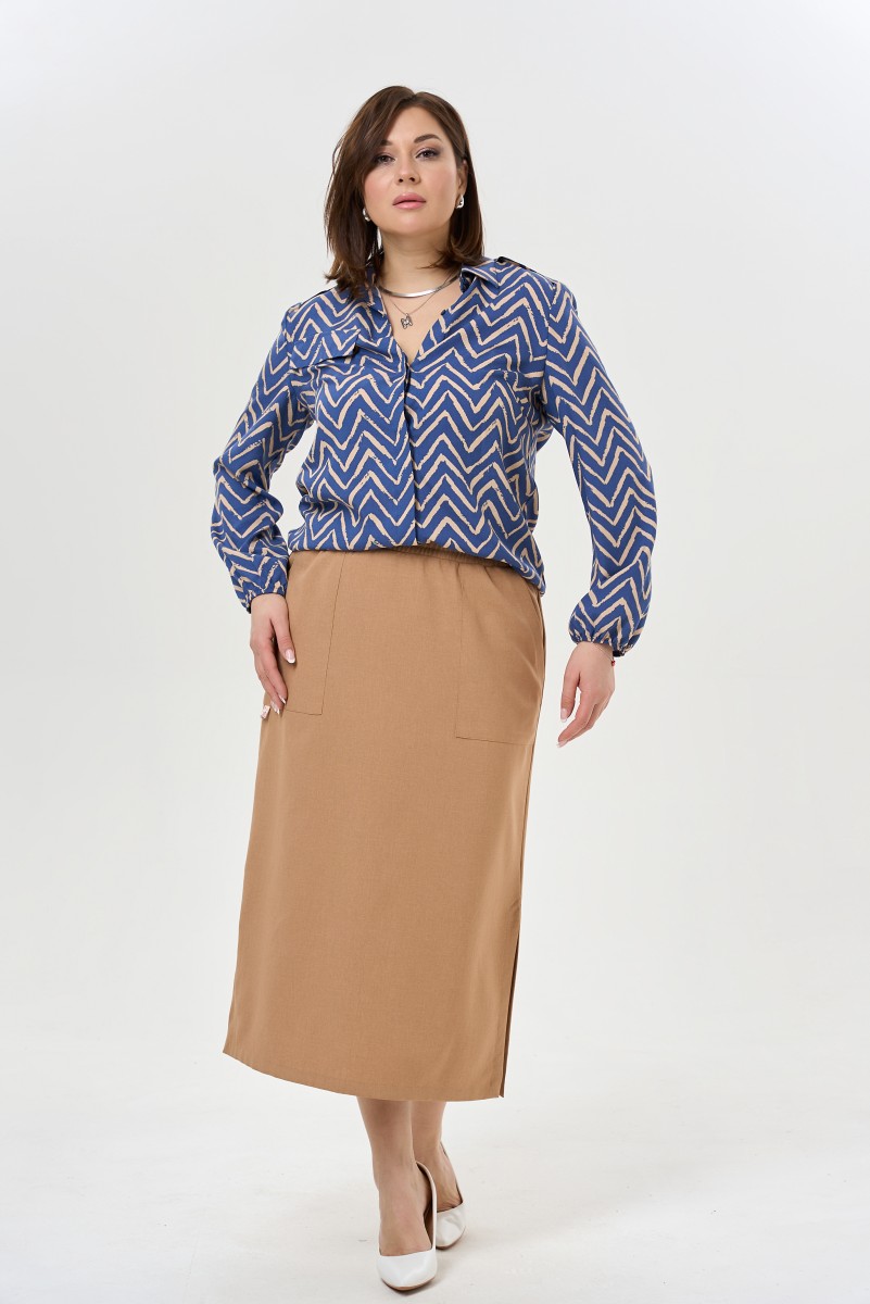 Юбка женская прямого силуэта длина макси. По переду накладной фигурный карман. Пояс притачной на резинке с завязывающимся шнуром.Низ ровный по боковым швам разрезы.