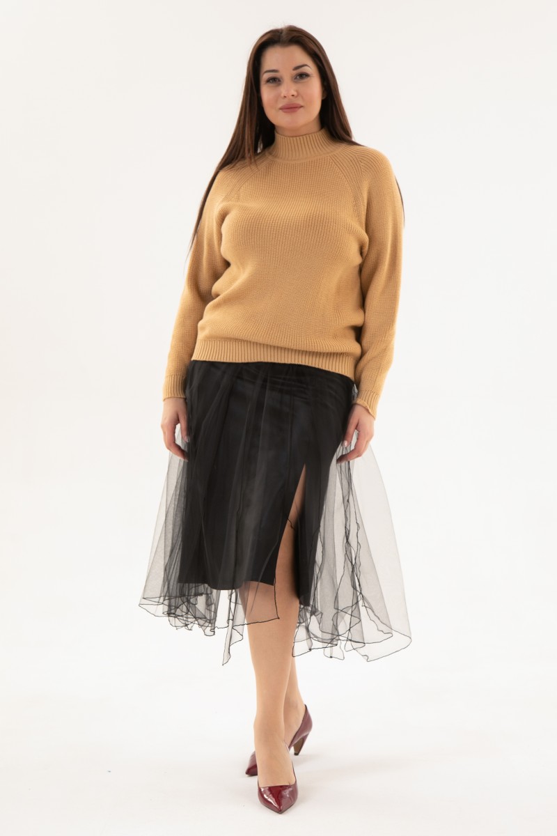 Нарядная юбка из двух слоев.Нижняя юбка из атласа на переде сбоку шов с разрезом. Талия собрана на широкую резину.Верхняя юбка из прозрачной сетки. Юбка из 16 клиньев с разрезами низ клиньев неровный. Срез талии собирается на узкую резину.Размеры сдвоенные 46-48 50-52 54-56 58-60