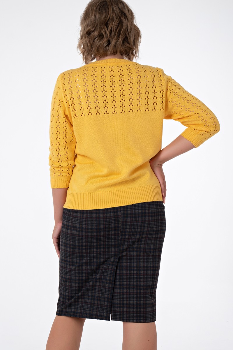 Юбка прямая на подкладке с притачным поясом-кокеткой длина ниже колена. Застежка на потайную «молнию» в среднем шве спинки. На переде в шве притачивания кокетки функциональные карманы. Удобство в движении обеспечивает шлица в нижней части среднего шва сп