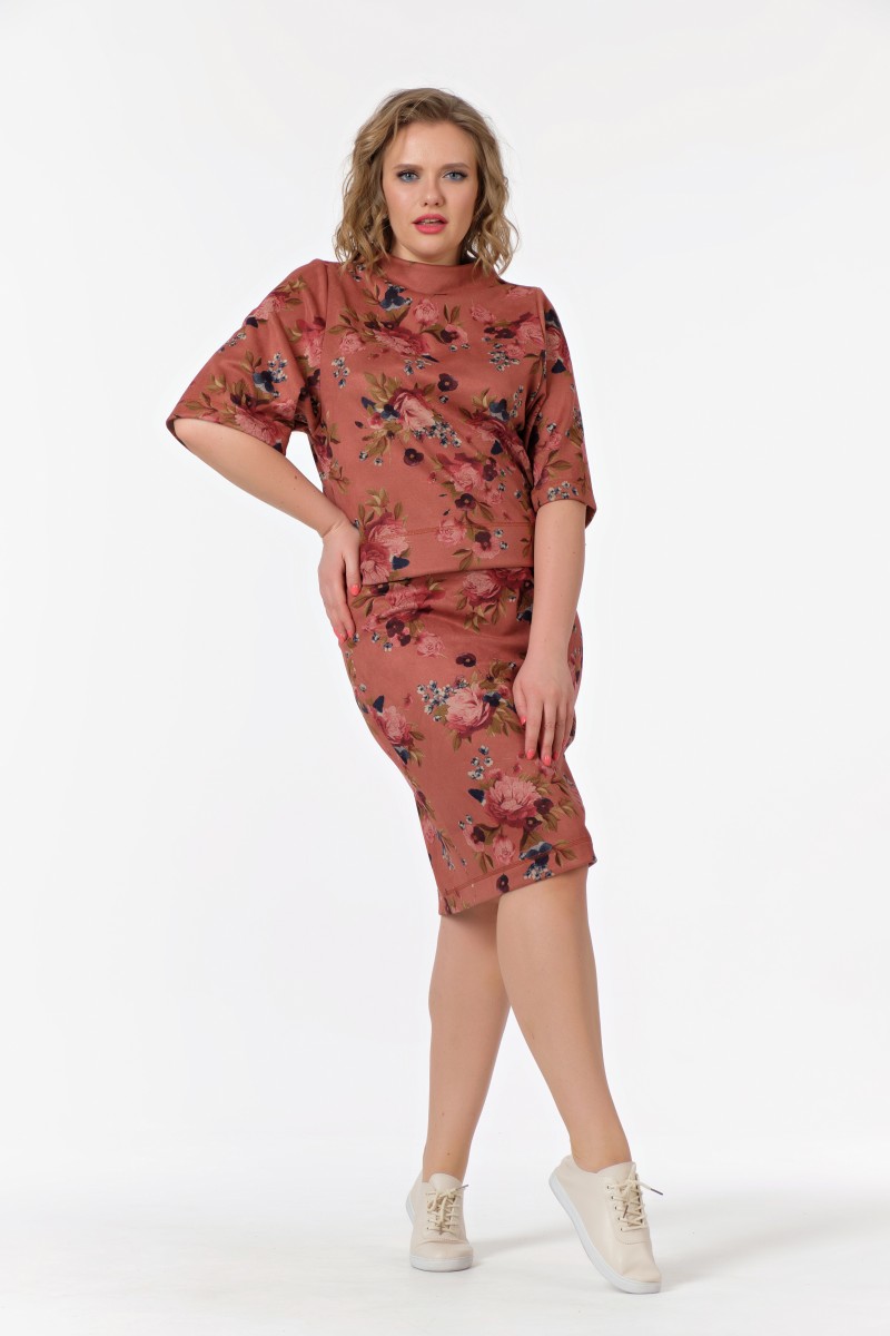 Юбка длиной ниже колена слегка зауженная к низу. В подгибку верхнего края юбки вложена широкая резина создающая комфортное прилегание по линии талии. На спинке средний шов и талиевые вытачки. Посадка средняя. Стиль классический.
