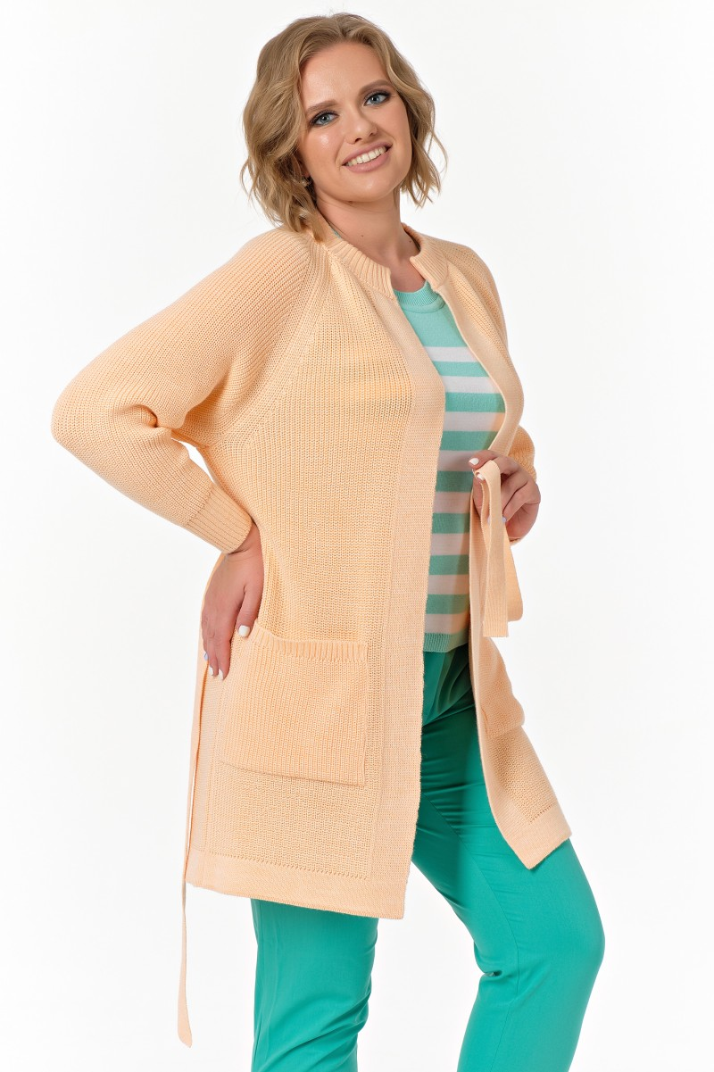 Этот кардиган словно создан для тех моментов когда хочется выглядеть собранно но чувствовать себя комфортно. Мягкий персиковый оттенок освежает любой образ а удлиненный силуэт добавляет элегантности даже самому простому наряду.