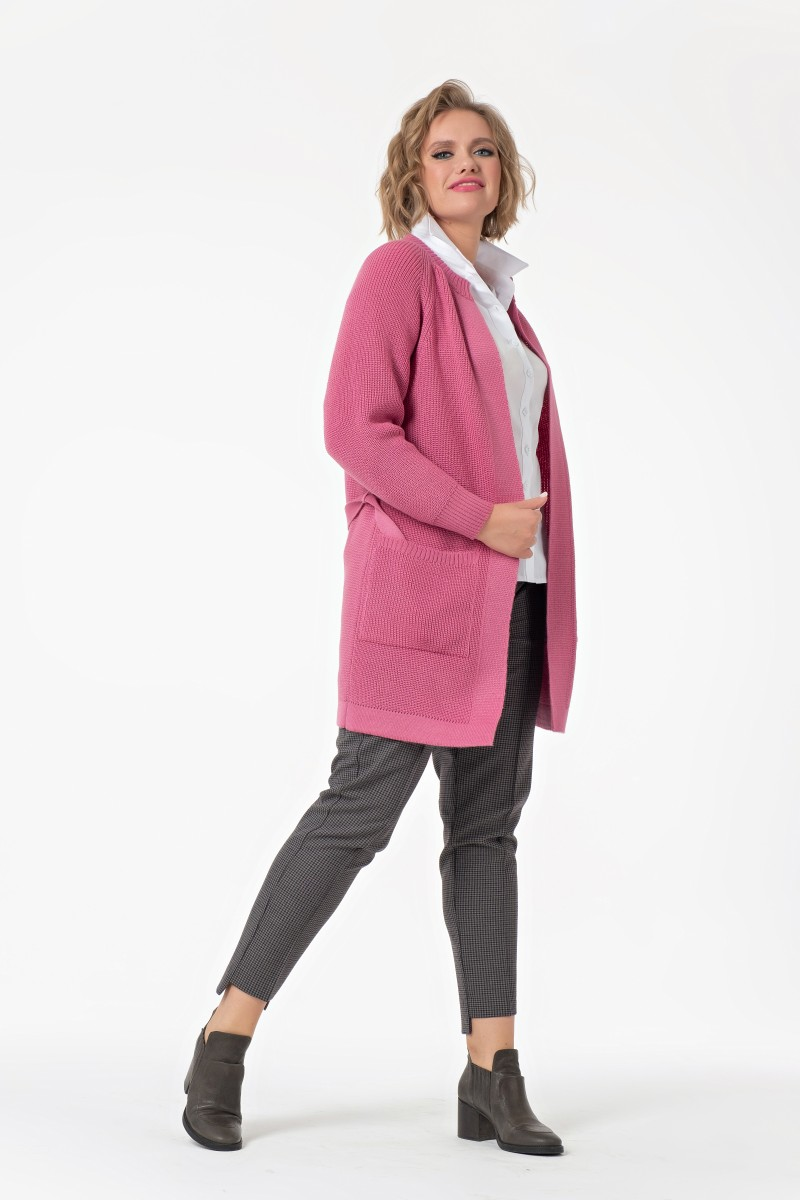 Этот кардиган словно создан для тех кто ценит комфорт без ущерба для стиля. Прямой силуэт до колена работает как мягкая броня – скрывает несовершенства и подчеркивает достоинства. Воротник-стойка придает образу структурность особенно когда кардиган надет поверх простой футболки или базового топа.Трикотажное полотно с фактурным переплетением приятно прилегает к телу не стесняя движений. Длинные рукава кроя реглан создают плавную линию от плеча до запястья. Два накладных кармана не только практичны но и добавляют непринужденности образу.Главная фишка – регулируемый пояс который позволяет носить кардиган как угодно. Распущенным для создания расслабленного силуэта или подпоясанным для подчеркивания талии. С прямыми деловыми брюками получается элегантный офисный лук. Зауженные джинсы и ботинки превращают его в идеальный выбор для прогулок по городу. А надетый поверх платья он становится частью многослойного образа для вечернего выхода. Этот кардиган легко адаптируется под настроение и планы дня.