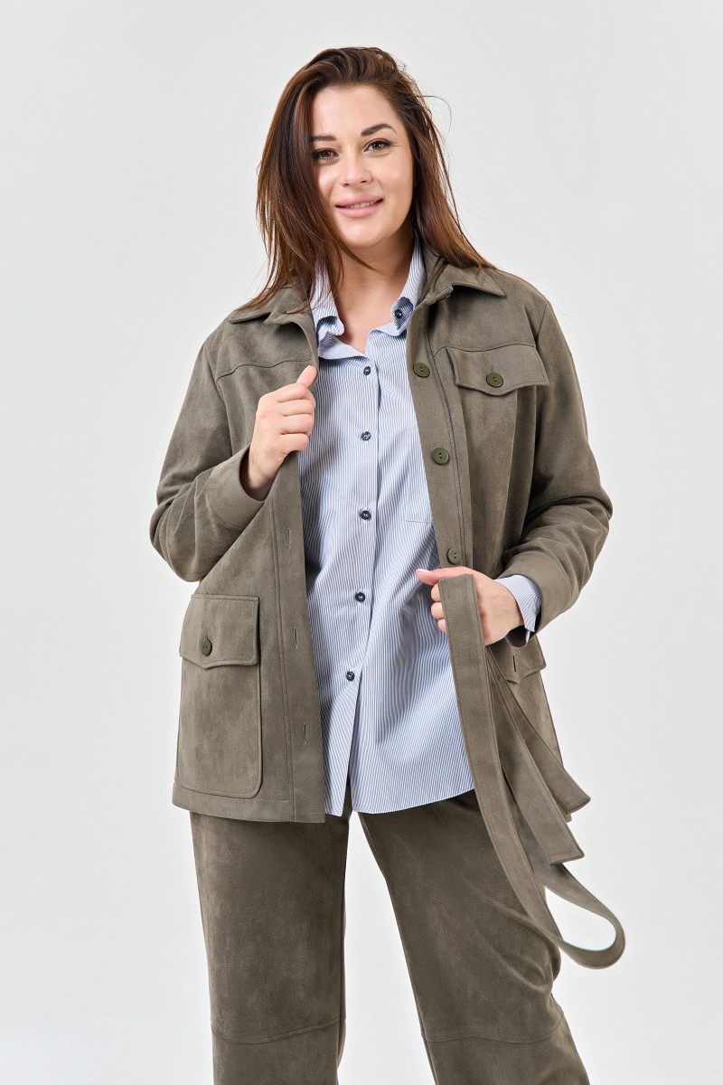 Жакет прямого силуэта с поясом оливковый