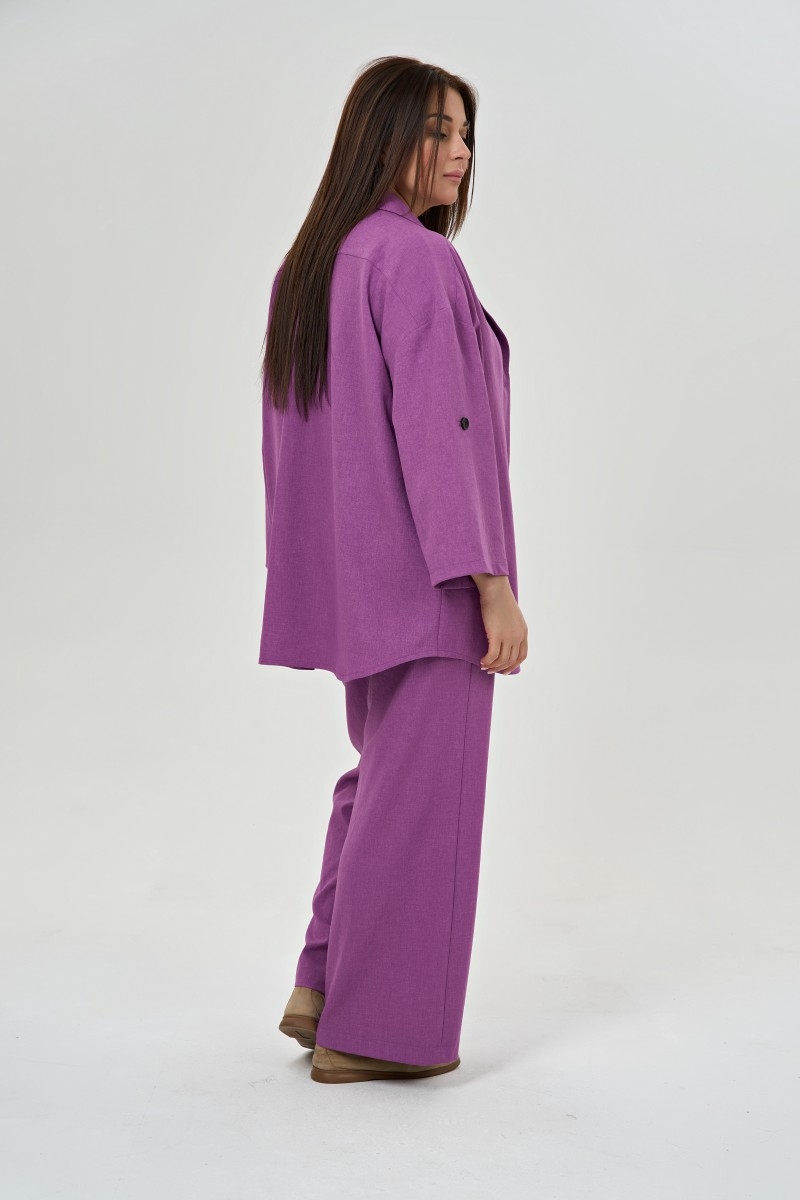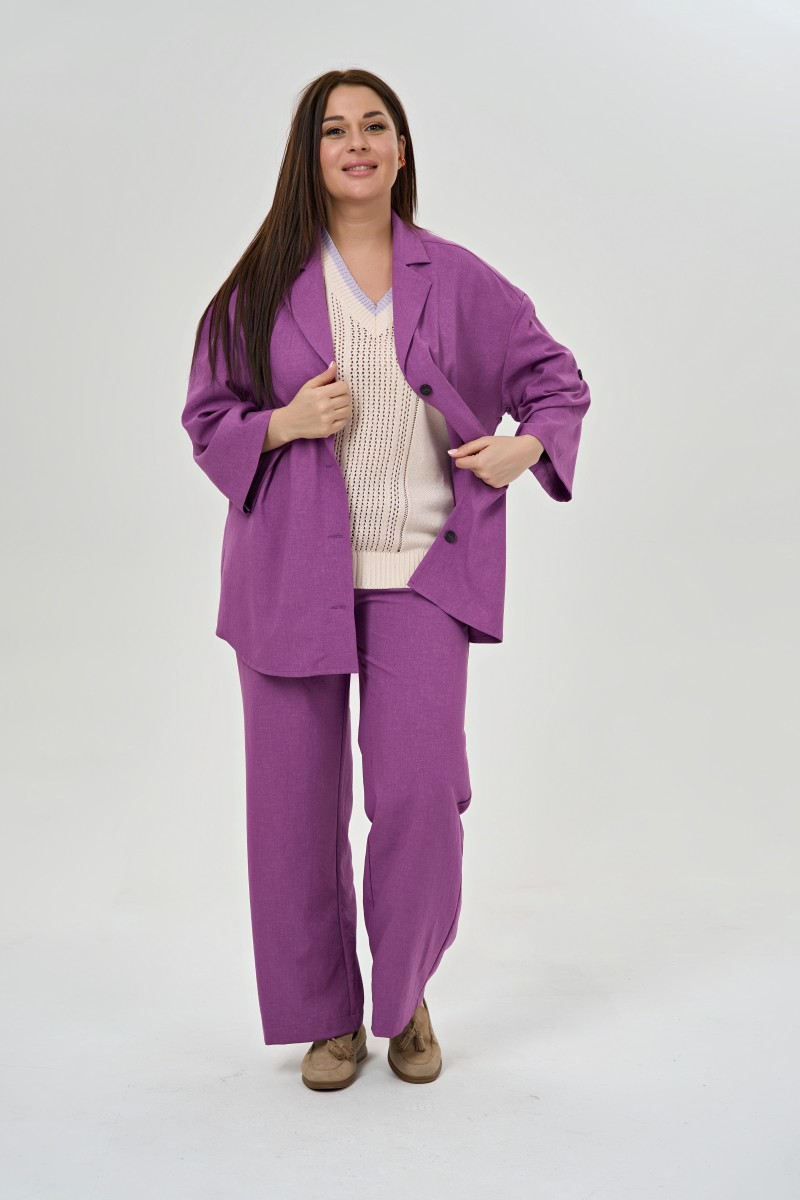 Этот жакет воплощает современный взгляд на деловую элегантность. Крой в стиле рубашки с воротником и лацканами добавляет образу структурности а прямой силуэт подходит любой фигуре. Рукава длиной три четверти с собранными краями на пуговицу смотрятся свежо и актуально. Четыре пуговицы по центру позволяют регулировать степень открытости образа. Спинка плавно переходит в передние детали создавая цельный силуэт без лишних швов. Фигурный низ добавляет жакету женственности и отличает от строгих офисных моделей. Натуральный лен дышит в жаркую погоду и красиво мнется создавая эффект небрежной роскоши. В офисе этот жакет сочетается с прямыми брюками высокой посадки для прогулок – с джинсами скинни или брюками-бананами. На деловую встречу надевайте с блузкой а для casual образа – поверх футболки. В путешествии такой жакет займет минимум места и всегда выручит для создания элегантного лука.