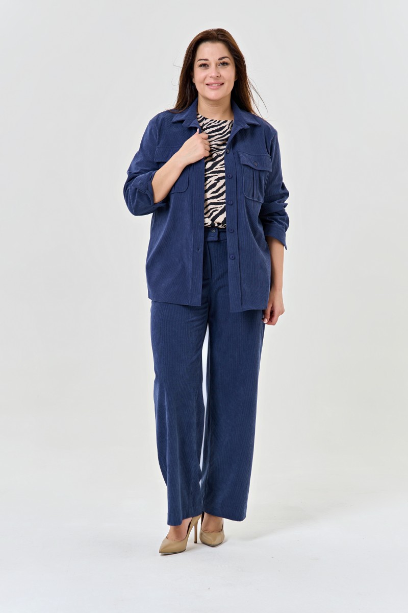Рубашка женская прямого силуэта. Воротник отложной на притачной стойке. Спинка с кокеткой.Перед с центральной застёжкой на шесть выметанных петель и пуговиц в верхней части накладные фигурные карманы с клапанами. Клапаны с обметанными петлями застегивающиеся на пуговицу.Рукава втачные одношовные с притачной манжетой с застежкой на выметанную петлю и пуговицу.