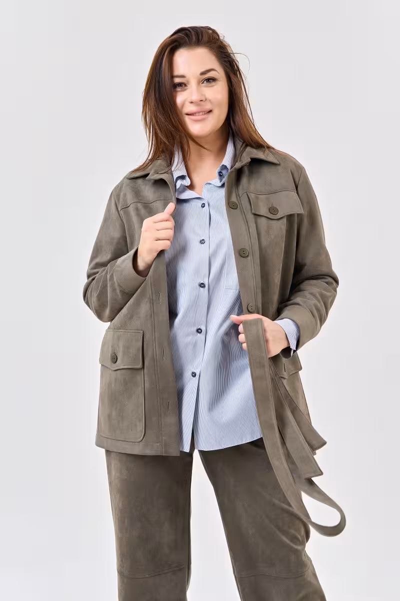 Этот жакет словно создан для тех кто ценит лаконичную элегантность. Прямые линии силуэта дарят уверенность а завязывающийся пояс позволяет играть с образом. Оливковый оттенок добавляет изысканности любому луку.