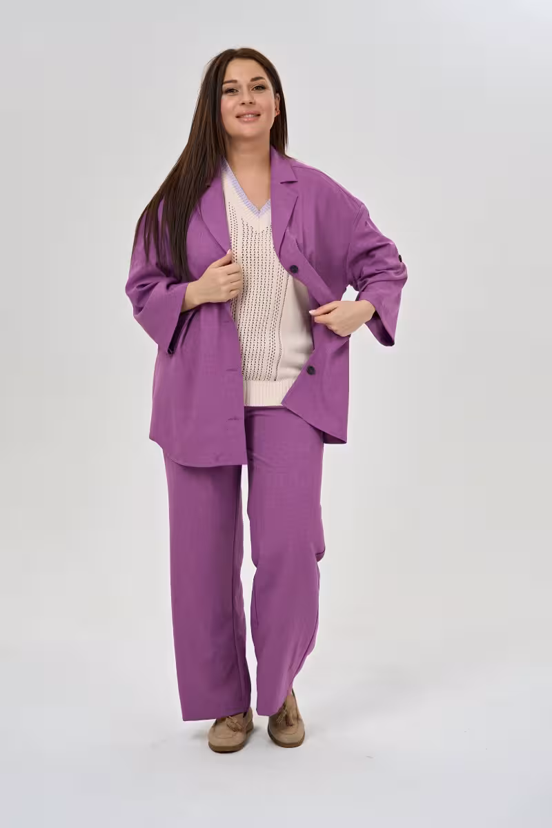 Этот жакет воплощает современный взгляд на деловую элегантность. Крой в стиле рубашки с воротником и лацканами добавляет образу структурности а прямой силуэт подходит любой фигуре. Рукава длиной три четверти с собранными краями на пуговицу смотрятся свежо и актуально. Четыре пуговицы по центру позволяют регулировать степень открытости образа. Спинка плавно переходит в передние детали создавая цельный силуэт без лишних швов. Фигурный низ добавляет жакету женственности и отличает от строгих офисных моделей. Натуральный лен дышит в жаркую погоду и красиво мнется создавая эффект небрежной роскоши. В офисе этот жакет сочетается с прямыми брюками высокой посадки для прогулок – с джинсами скинни или брюками-бананами. На деловую встречу надевайте с блузкой а для casual образа – поверх футболки. В путешествии такой жакет займет минимум места и всегда выручит для создания элегантного лука.