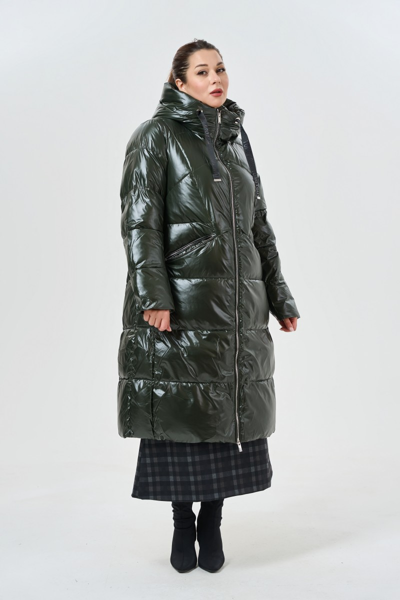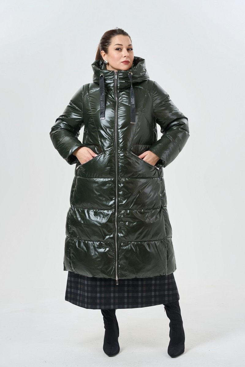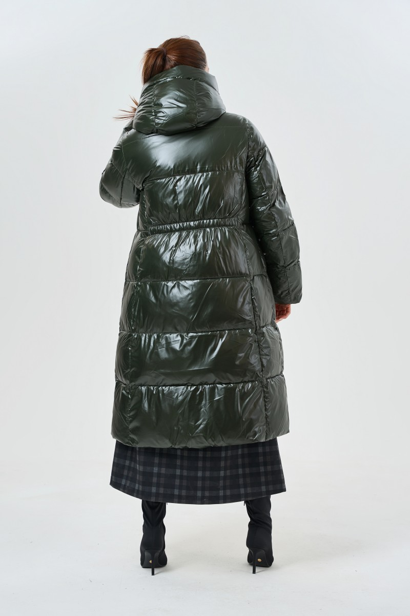Объемный силуэт создает кокон тепла и комфорта в самые суровые дни. Насыщенный зеленый оттенок добавляет яркости зимнему гардеробу. Длина до середины голени защищает от ветра и создает эффектный городской образ.
