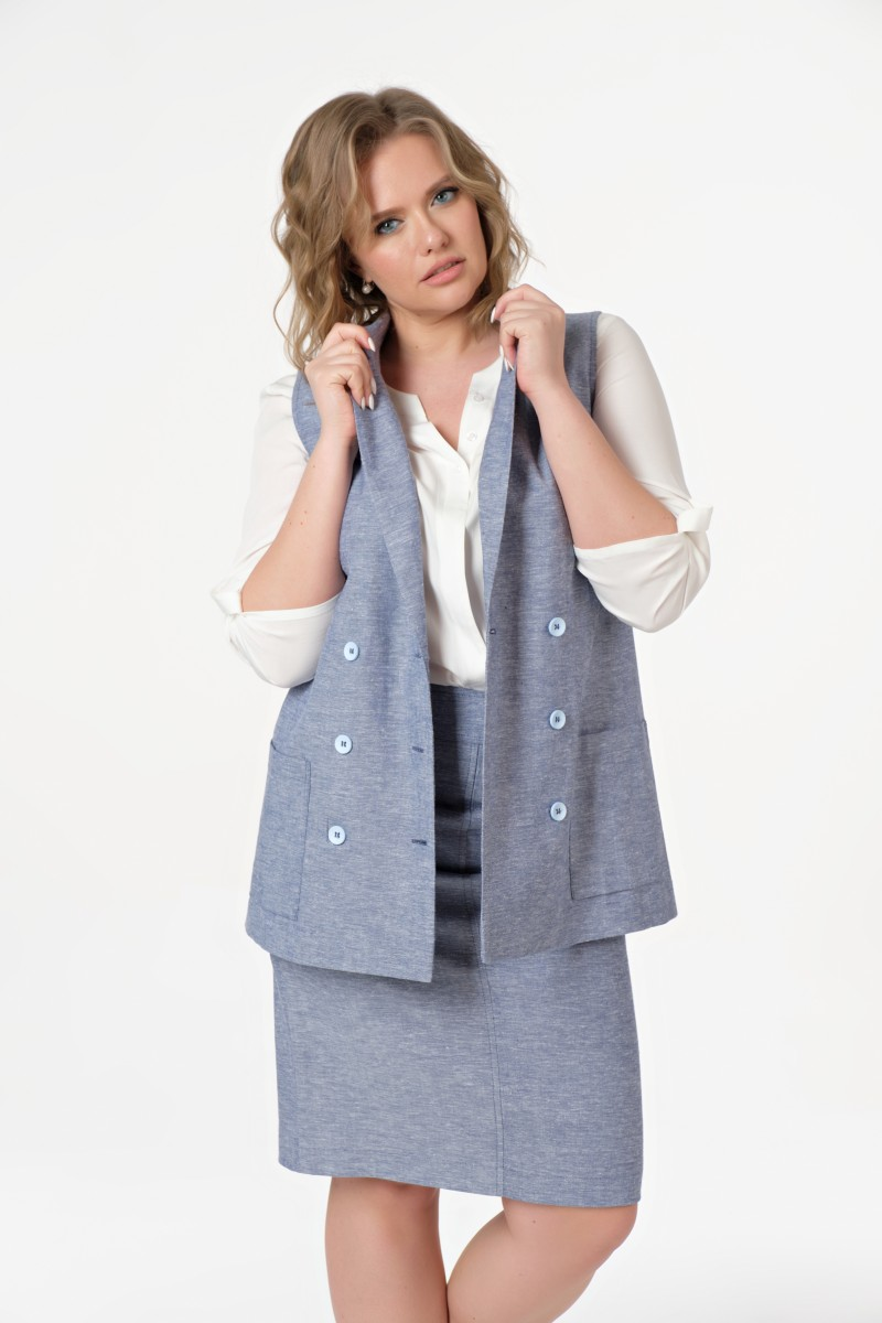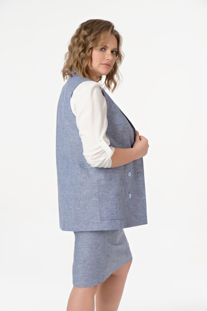 Этот льняной жилет превращает простую блузку в продуманный деловой ансамбль. Двубортная застежка и четкие линии лацканов создают тот самый эффект “”собранности”” без усилий. Натуральный лен дышит и не сковывает движения даже в самый напряженный рабочий день.